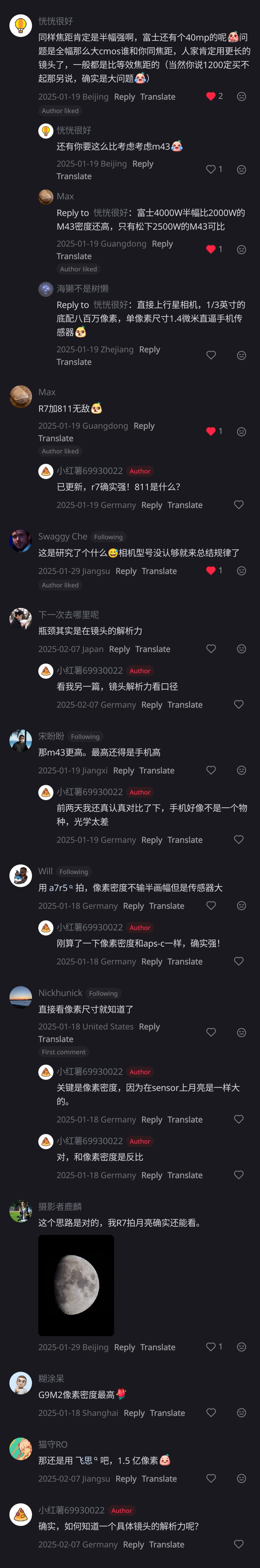结论就是:焦距给定时,月亮在传感器上的成像大小由焦距决定,而不是由画幅决定。画幅影响的是能装下多大的视场;如果只比较月亮本身能占多少像素,主要看像素密度。