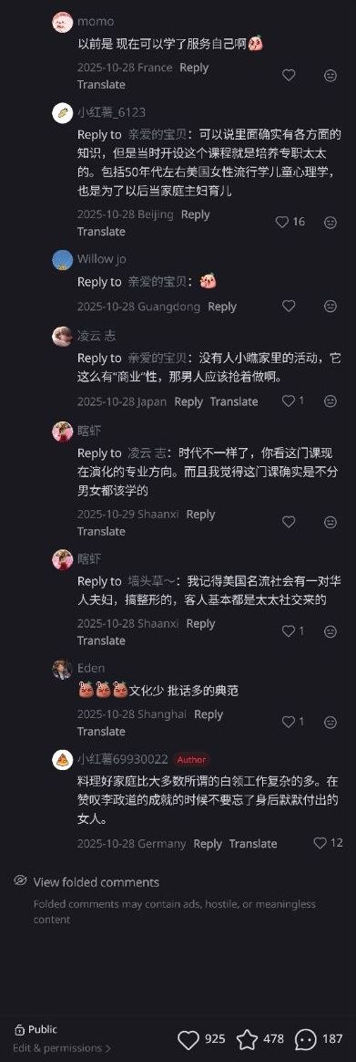 李政道的妻子秦惠䇹(Jeannette Hui-Chun Chin)在赴美后确实被记录为学习家政学(Home Economics)。这个专业在 20 世纪中期的美国大学中很常见,尤其是女性留学生常见的选项之一。
